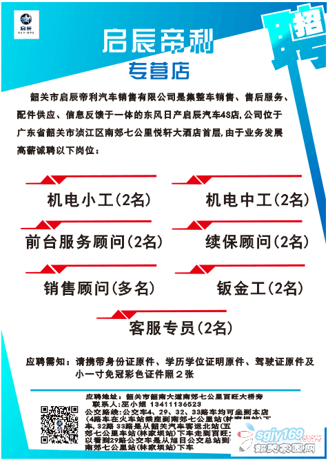 韶關(guān)市東風(fēng)日產(chǎn)啟辰通九州帝利專營店誠聘